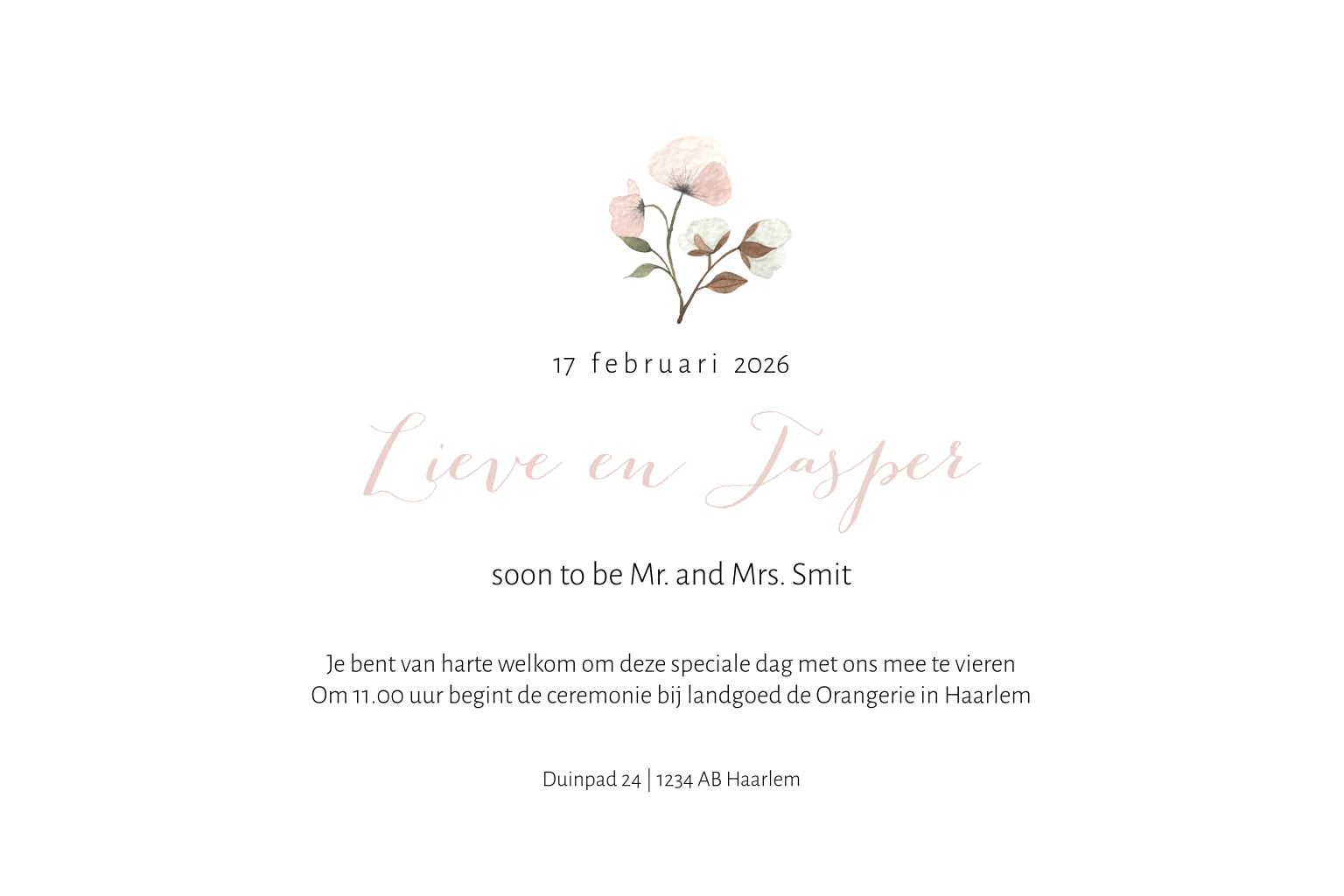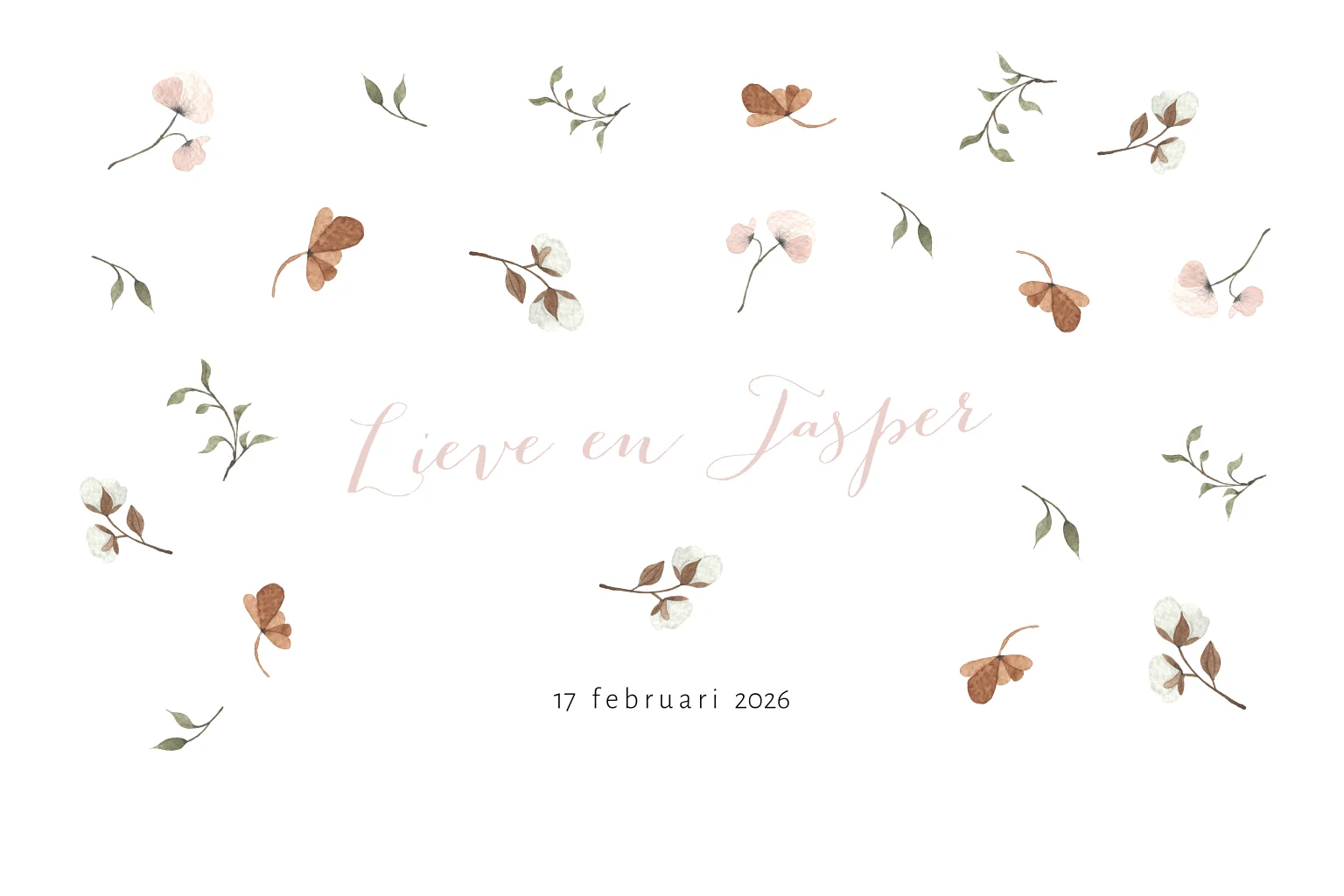 Romantische trouwkaart met kleine handgeschilderde bloemetjes