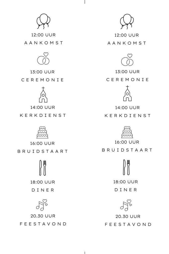Dagprogramma voor bij een trouwkaart met icoontjes