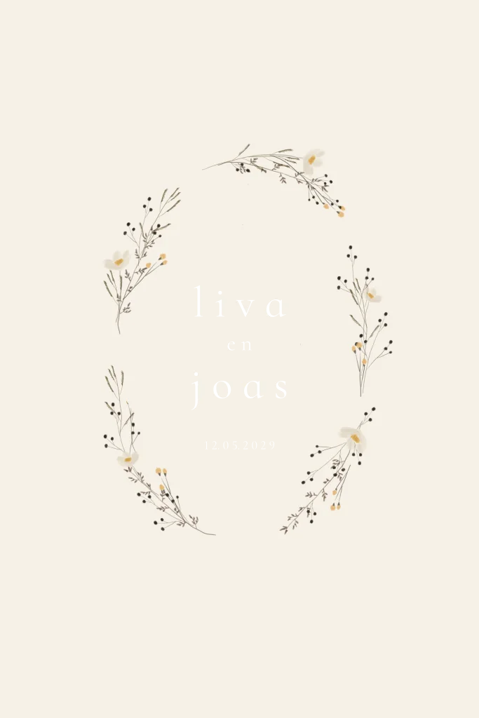 Trouwkaart Krans veldbloemen