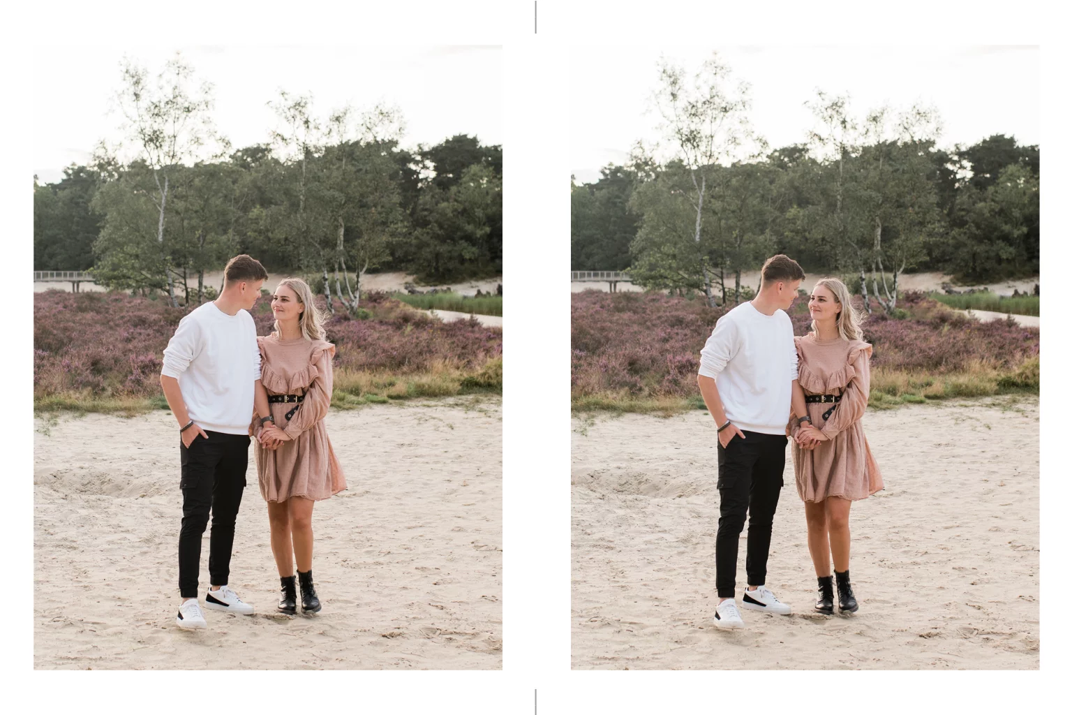DIY foto labels. Op de kaart staan 2 staande foto's. Vervang de foto's door een mooie foto van jullie samen, bestel de kaart en snijd of knip de kaart thuis doormidden. Hang de foto aan de trouwkaart met een paperclip of een fluwelen lintje. Kies voor het kleinste formaat (10,5x7cm).