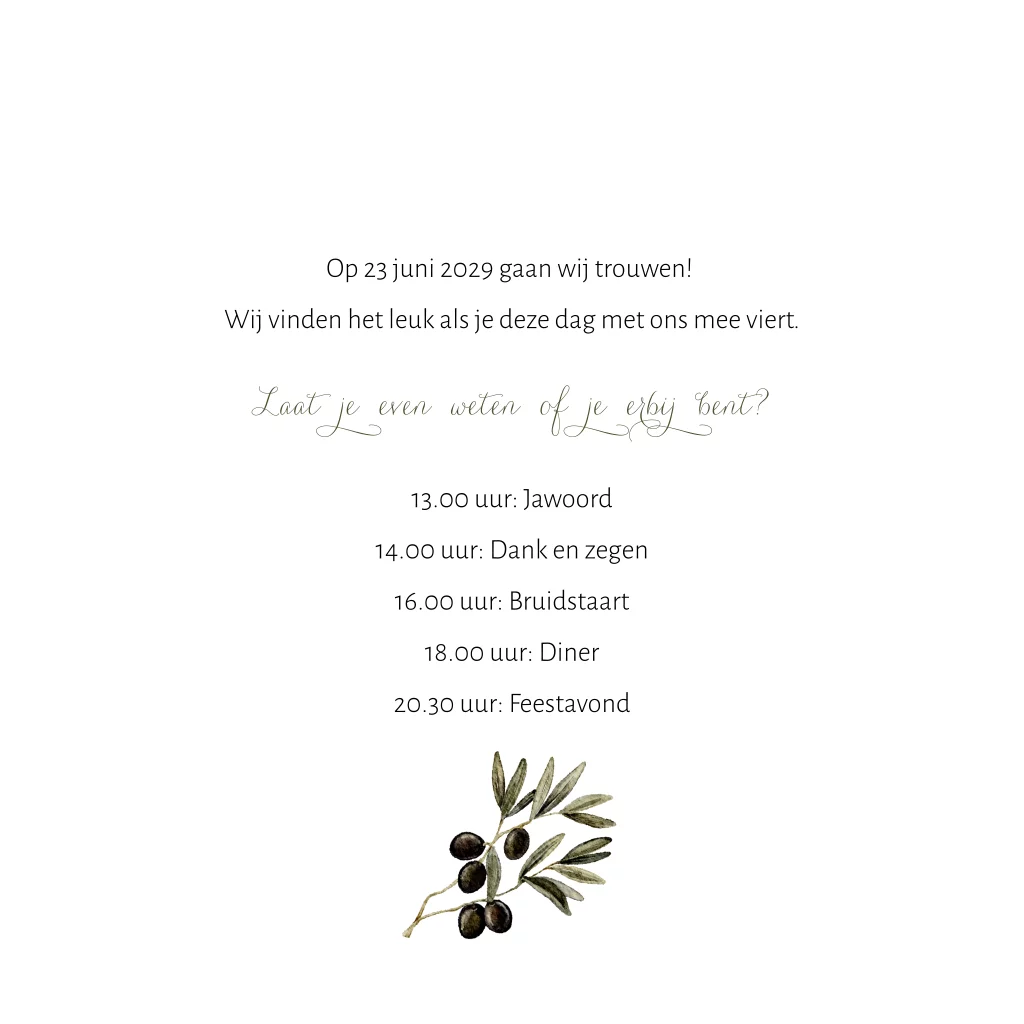 Crème trouwkaart met een krans van olijftakken