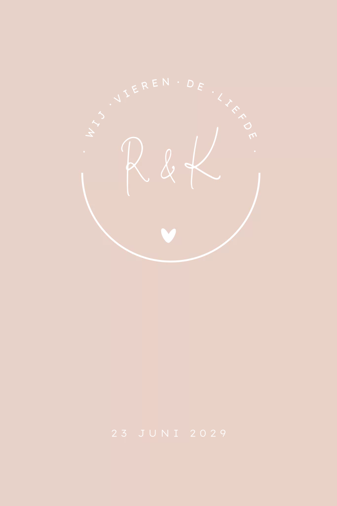 Op zoek naar een prachtige en romantische trouwkaart? Ontdek onze oudroze trouwkaart met een subtiel en elegant ontwerp. Deze enkele trouwkaart bevat een verfijnd logo met de tekst 'wij vieren de liefde', omringd door schitterende goudfolie initialen en een liefdevol goud hartje. De achtergrond van de kaart straalt in een warme oudroze tint, die je naar wens kunt aanpassen in kleur. Met zijn klassieke uitstraling en minimalistische lijntekening is deze kaart perfect voor een romantische en luxe bruiloft.