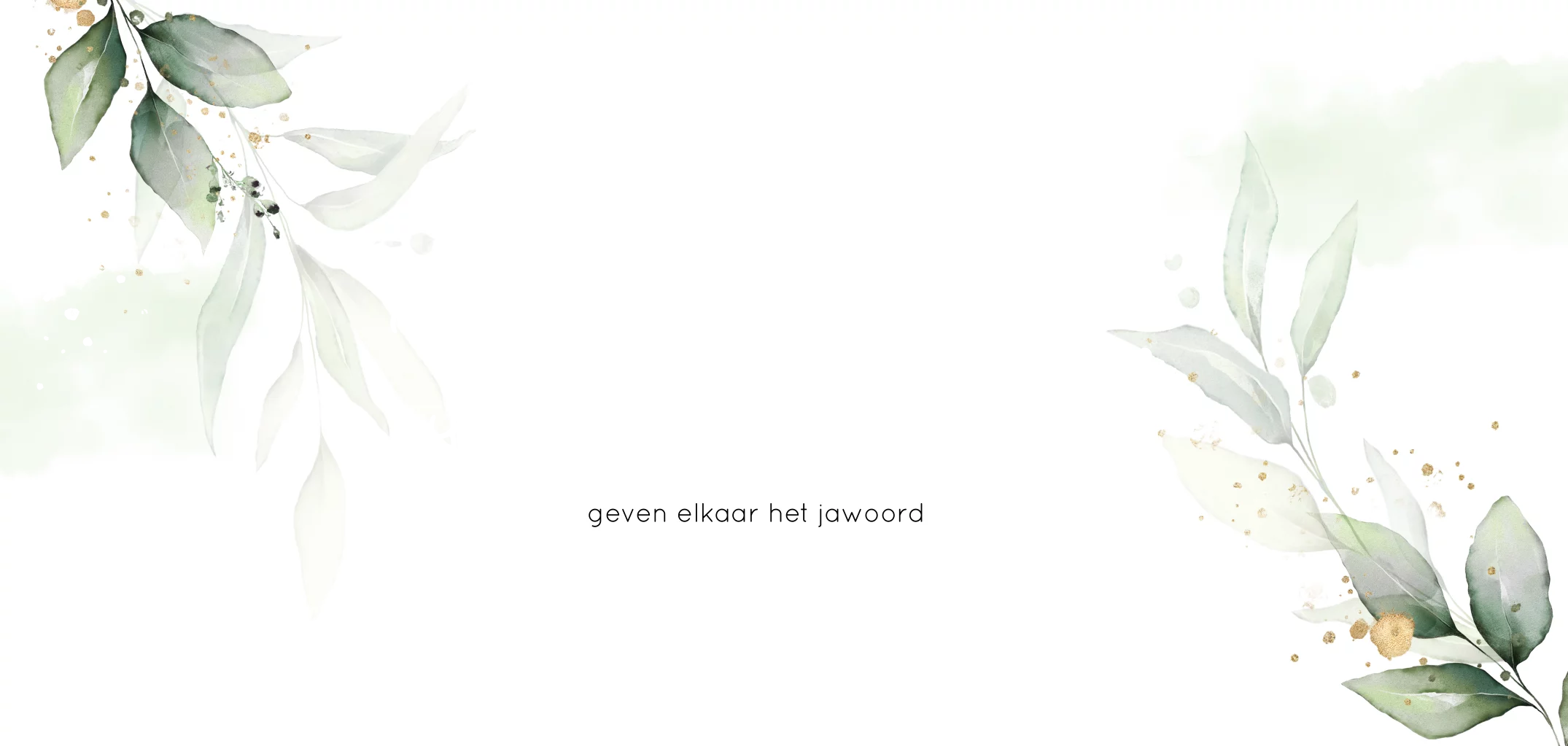 Panorama trouwkaart met goudfolie naam en waterverf takjes