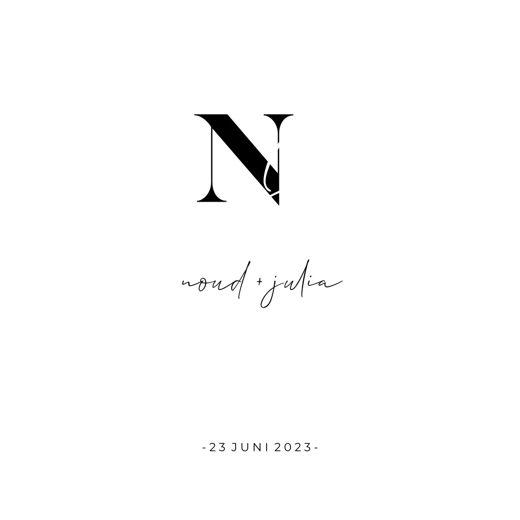 Onze prachtige trouwkaart met initialen in goudfolie en mooie typografie straalt een perfecte mix van eenvoud en elegantie uit. Het ontwerp is ontworpen voor paren die op zoek zijn naar een minimalistische en moderne uitstraling voor hun huwelijksuitnodigingen. Met één initiaal in diep zwart en de andere schitterend gedrukt in glinsterend goudfolie, straalt deze uitnodiging tijdloze klasse uit.