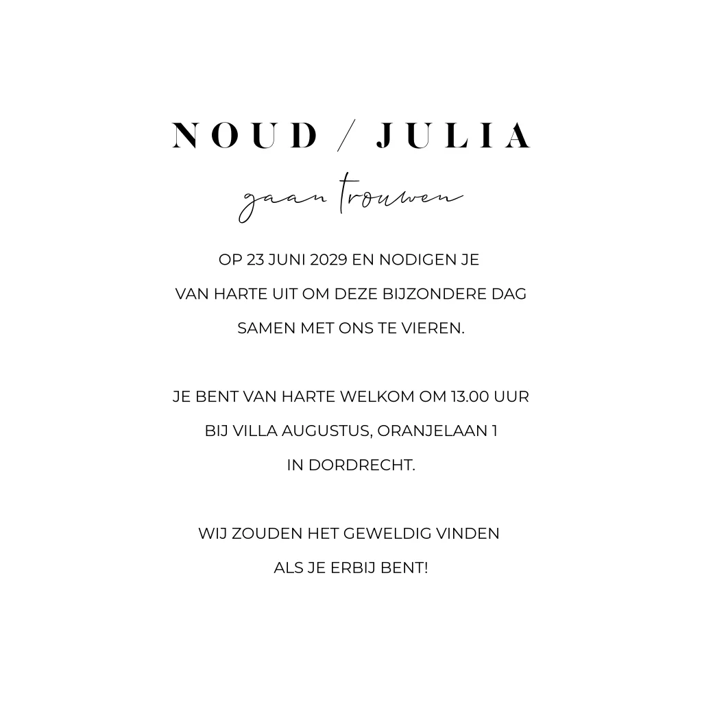 Stijlvolle trouwkaart met initialen in goudfolie en mooie typografie