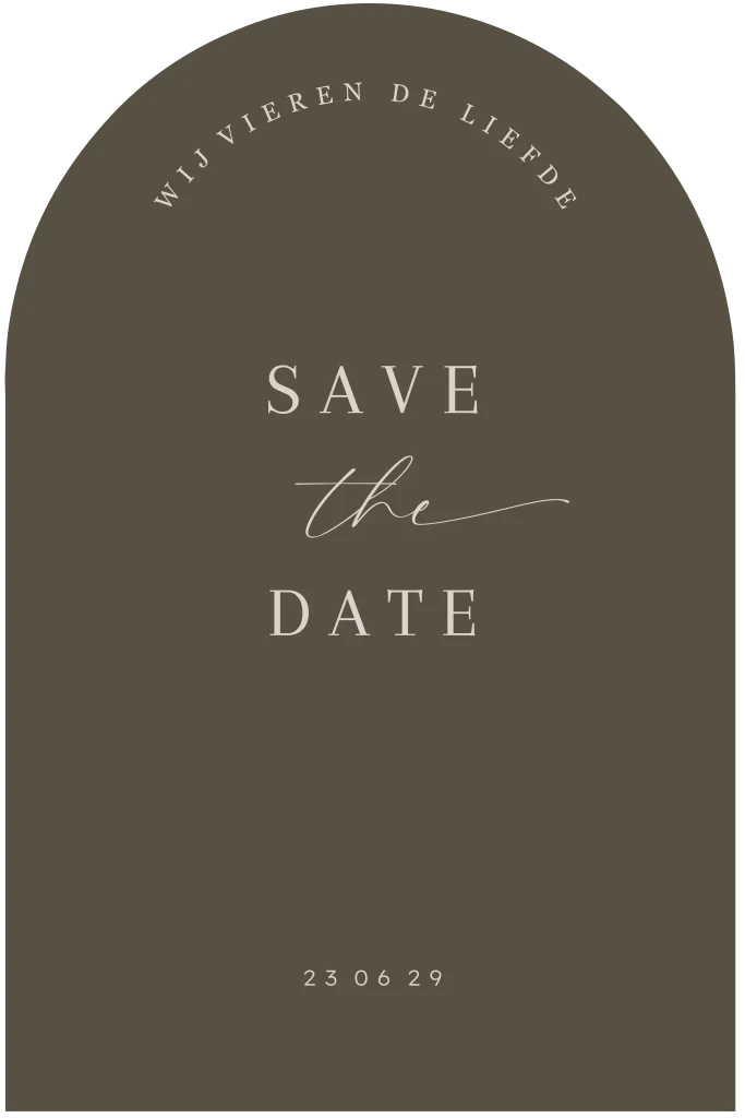 Bruine save the date kaart klassiek boogvorm stijlvol