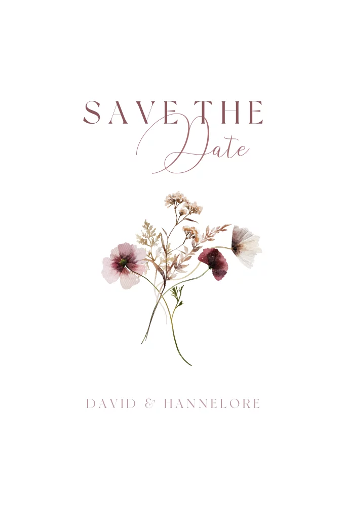 Deze elegante Save the date kaart is versierd met een prachtig bloemenontwerp in roze en donkerrode tinten. De combinatie van de zachte roze bloemen met de diepe, rijke tonen van donkerrood zorgt voor een romantische en warme uitstraling. Deze kaart is perfect om jullie gasten alvast een voorproefje te geven van de sfeer van jullie grote dag. Laat iedereen weten om de datum vrij te houden met deze stijlvolle en liefdevolle uitnodiging. Deze kaart past bij onze trouwset waar de bloemen ook in terugkomen.