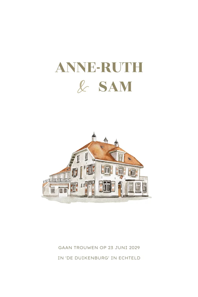 Dubbele trouwkaart getekende trouwlocatie de Duikenburg