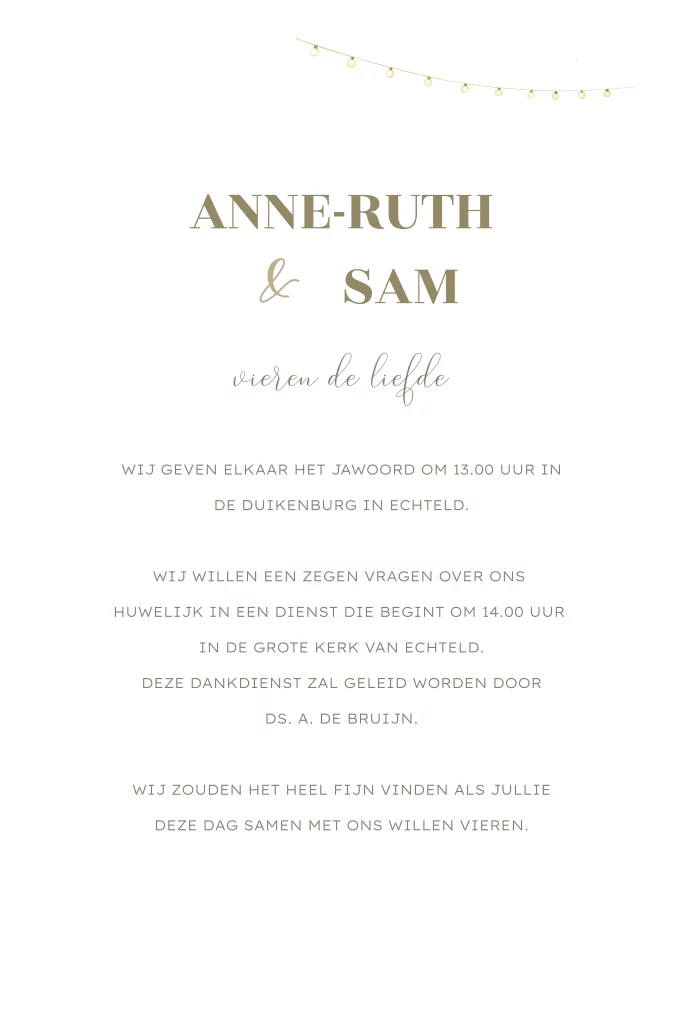 Prachtige en unieke getekende trouwkaart die je kunt gebruiken als jullie je trouwdag vieren in de Duikenburg in Echteld. Op de voorkant staat het restaurant getekend. Je kunt bij ons iedere trouwlocatie laten tekenen. Zo krijg je echt een unieke uitnodiging voor jullie bruiloft. Neem dan contact op.